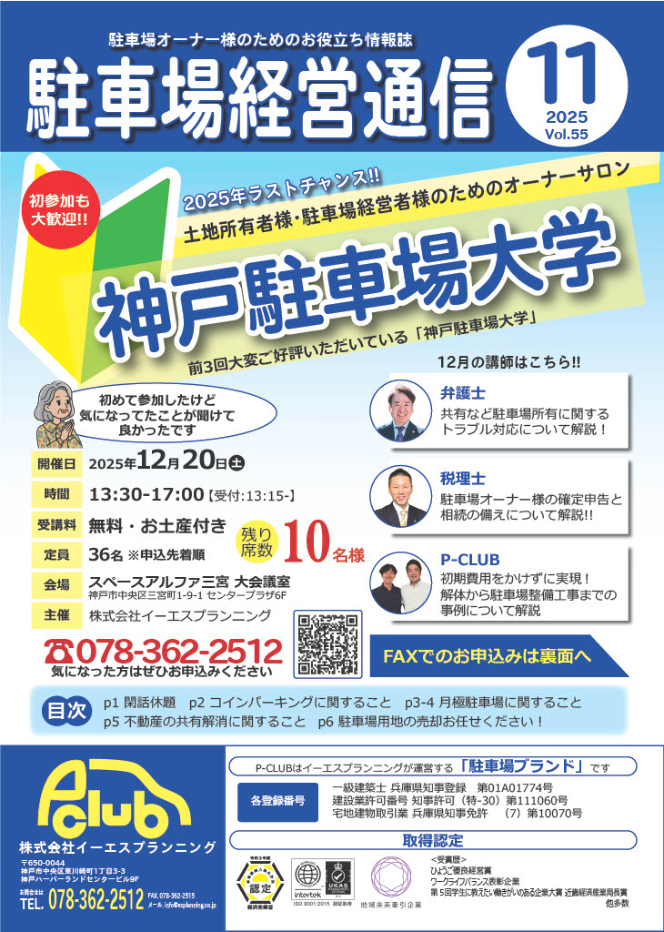 Vol.55 駐車場経営通信2025年11月号 発刊致しました。