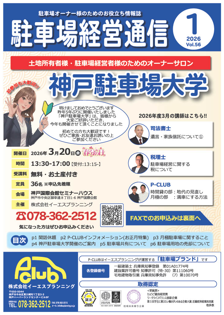 Vol.56 駐車場経営通信2026年1月号 発刊致しました。