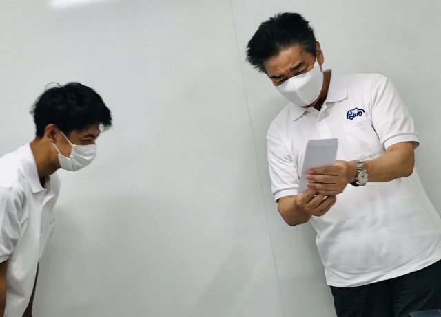 KEMS委員の方より社員にそれぞれ手渡しです♪♪