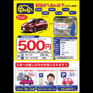 11月2日にオープンし、1週間が経過しました! 当日最大料金500円は安い!!というお客様からの声も聴いております! 1週間が経過し、少しず…