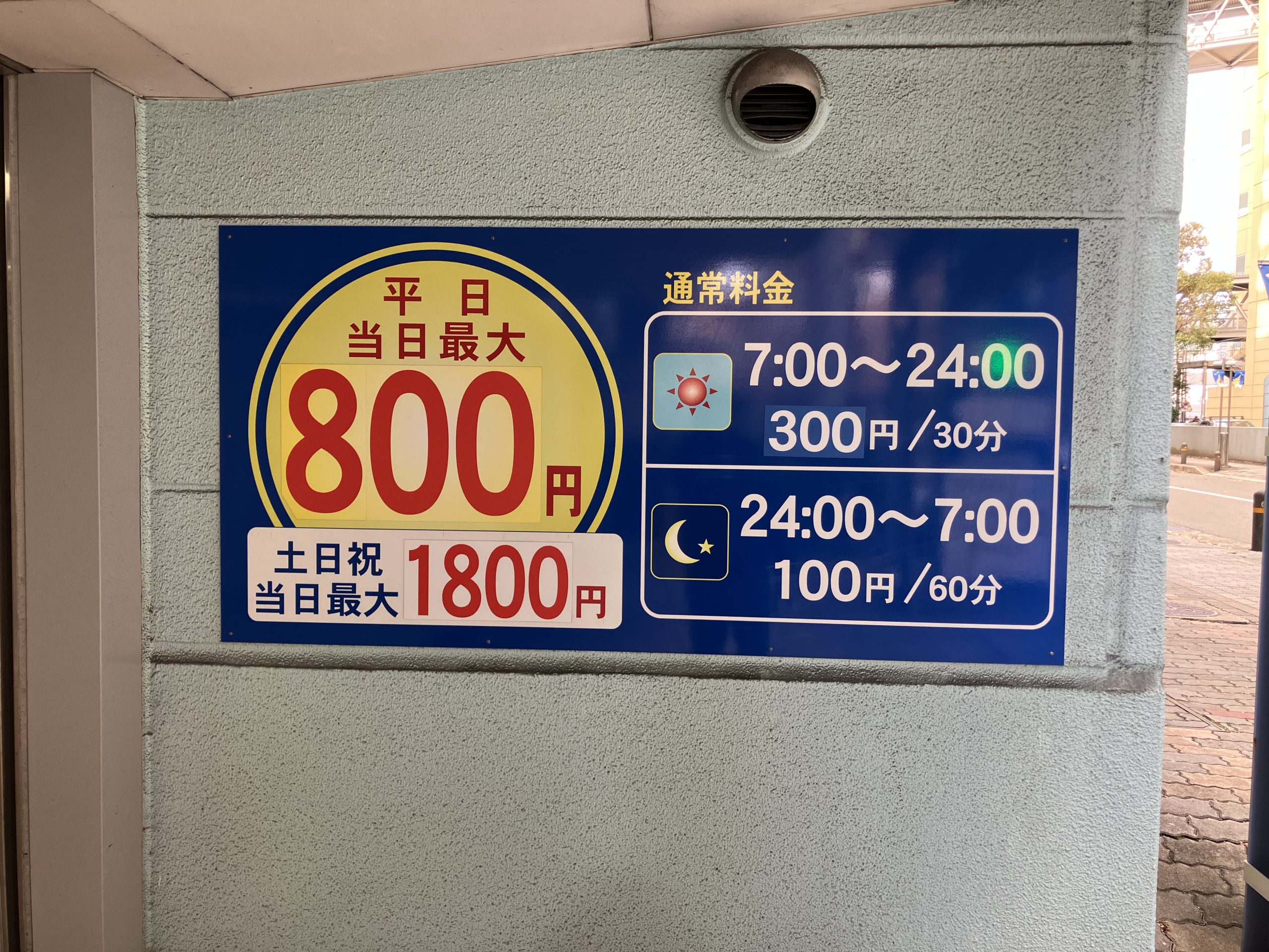 【通常料金】 0:00~7:00 100円 / 60分 7:00~24:00 300円/30分 【当日最大料金】 平日:800円 土日祝:1,800円 |