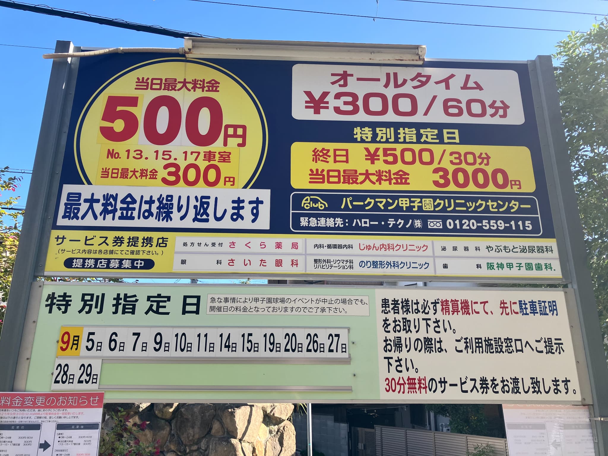 備考 | ※特別指定日:近隣施設でのイベント等開催 駐車場利用約款 使用可能紙幣:1000円札のみ可 |