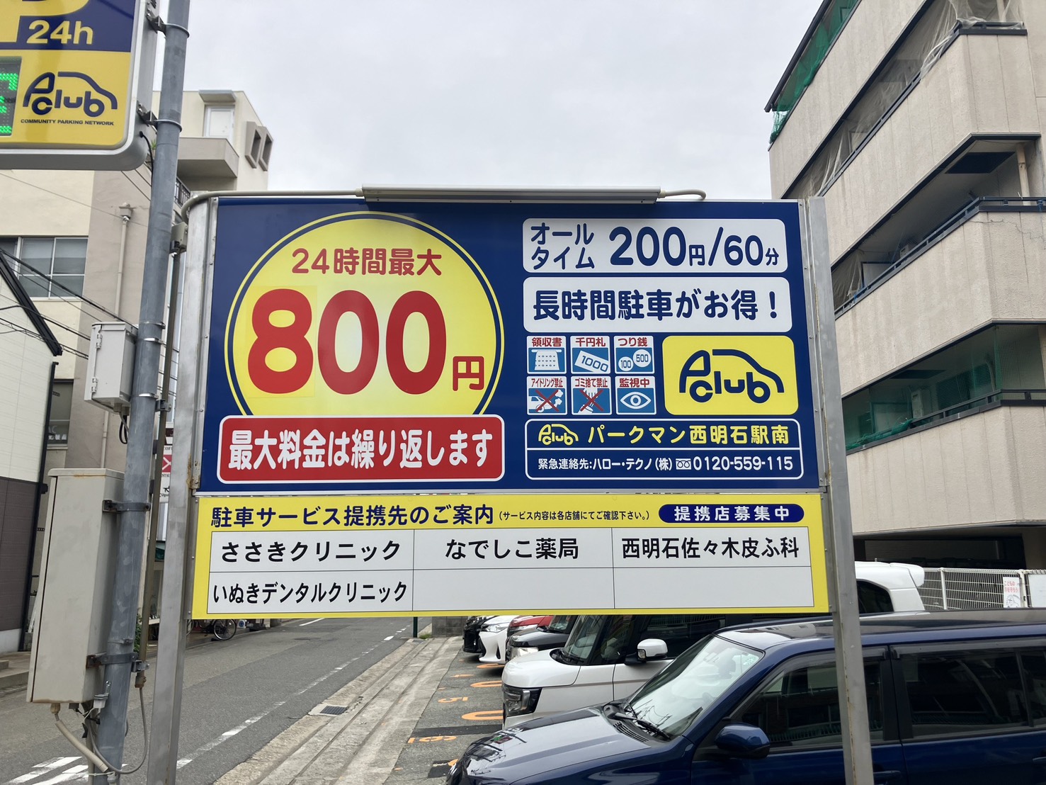 | 通常料金 | 【通常料金】 終日 200円/60分 【24時間最大料金】 800円 |