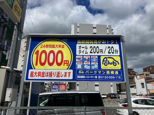 【通常料金】 終日 200円/30分 【最大料金】 入庫後24時間最大 1000円 |