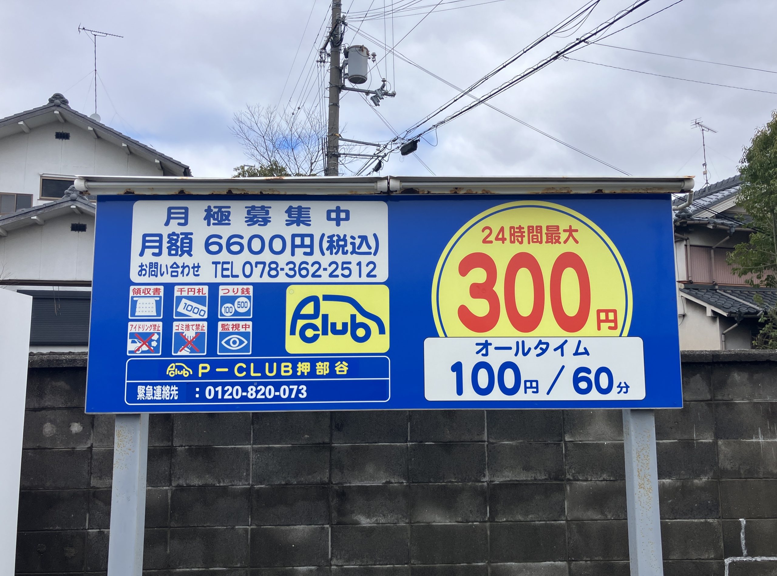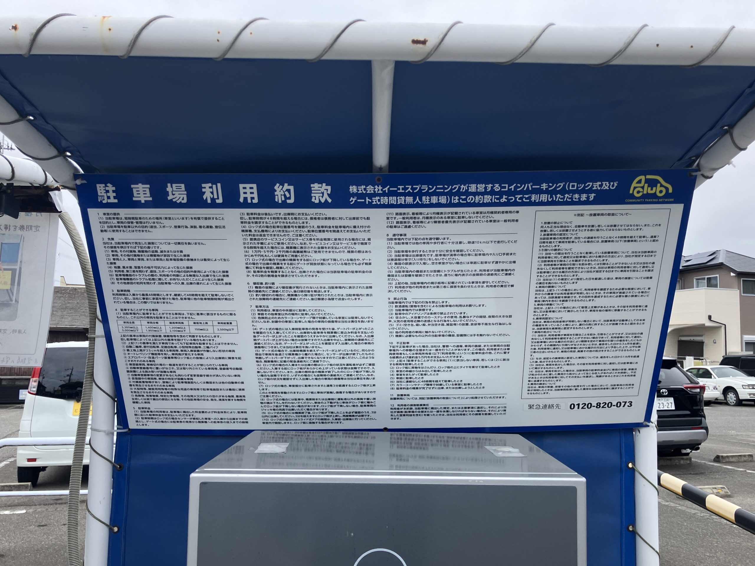 駐車場利用約款 ※防犯カメラ設置店舗 使用可能紙幣:1000円札のみ可 |