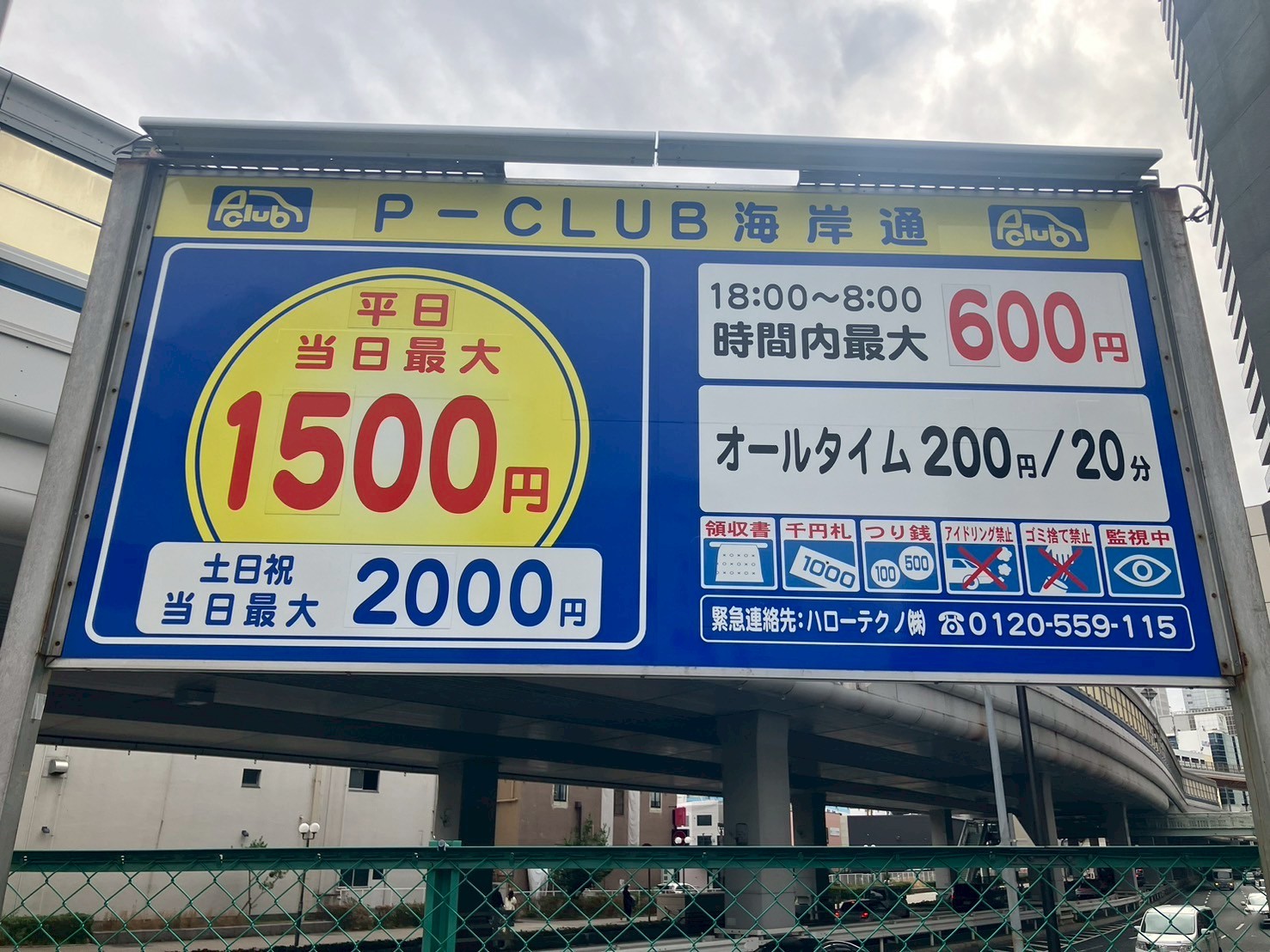 | 通常料金 | 【通常料金】 全日 200円/20分 【当日最大料金】(24時まで) 平日 1500円 土日祝 2000円 【夜間最大料金】 全日 18:00-8:00 600円 |