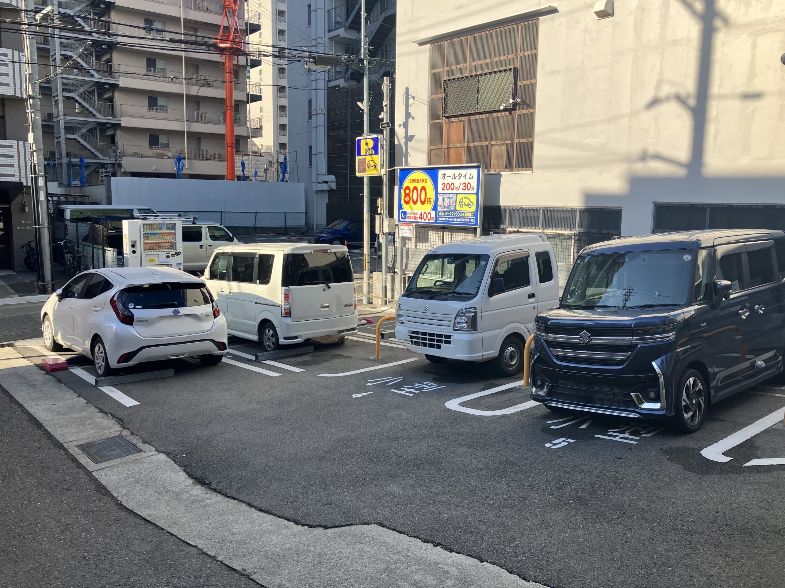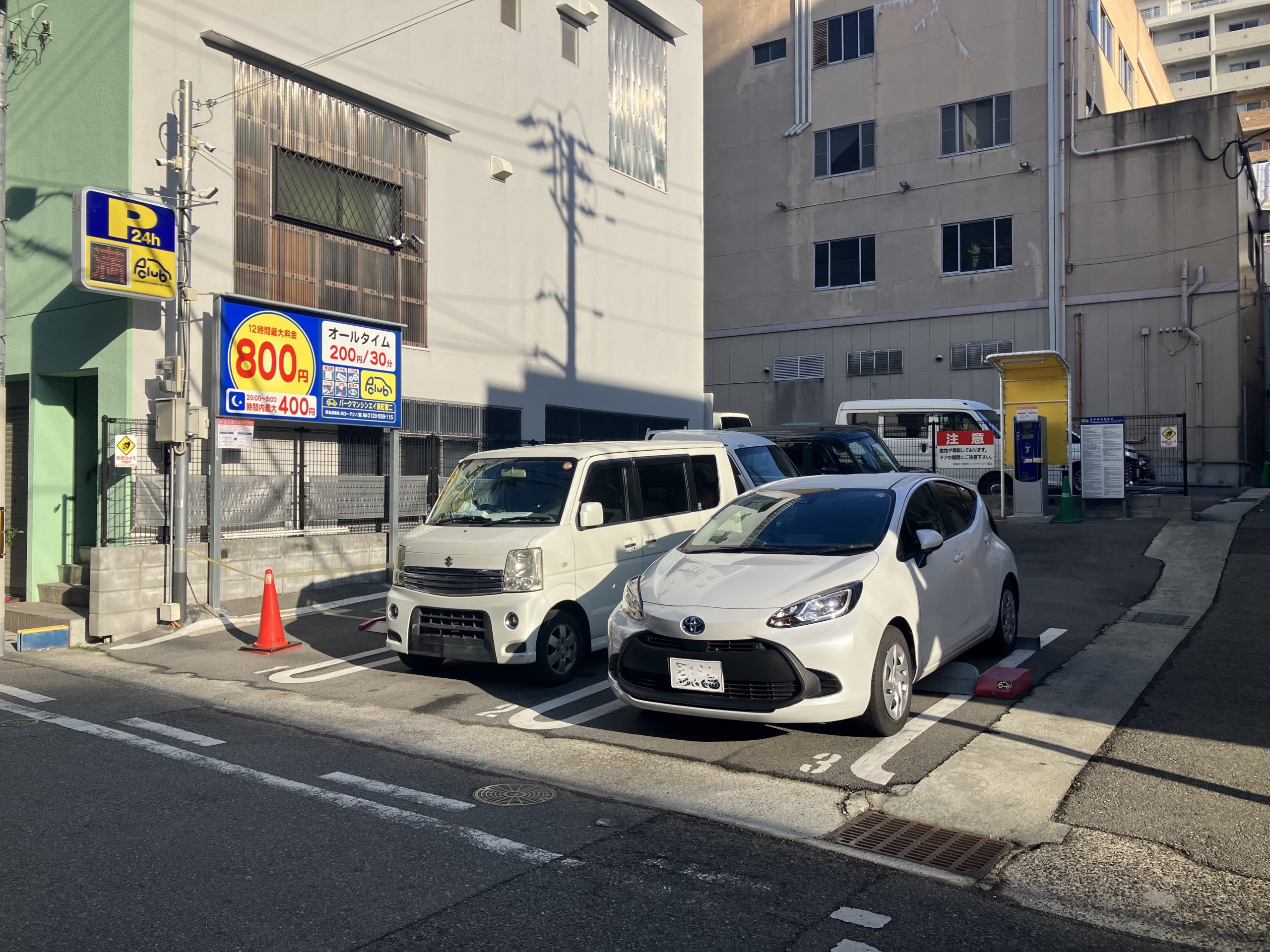| 通常料金 | 【通常料金】 全日 200円/30分 【時間内最大料金】 12時間最大 800円 時間内最大(20:00~8:00) 400円 |