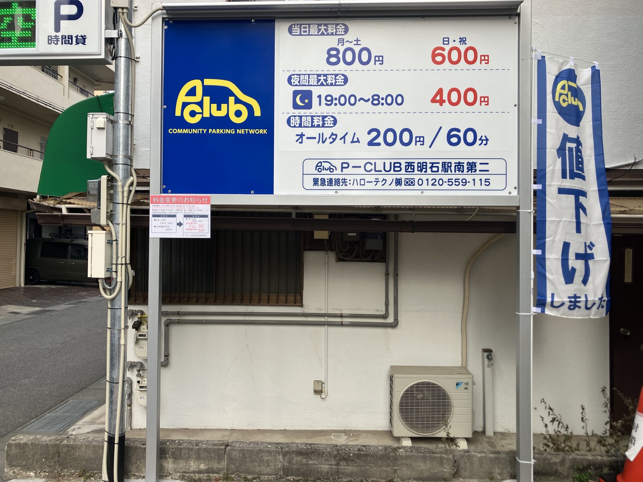 全日 200円/60分 当日最大 月~土 800円 日・祝 600円 夜間最大 19-8 400円 |