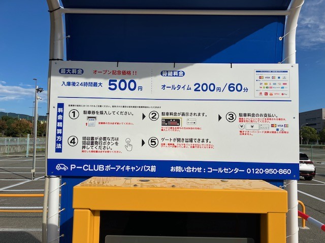 | 通常料金 | 200円/60分 【オープン記念!】 入庫後24時間最大 500円 |