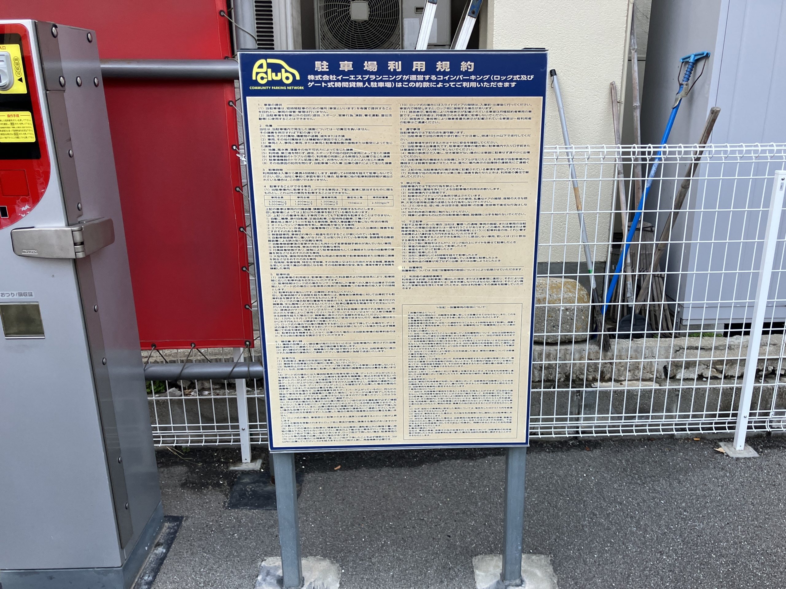 駐車場利用約款 使用可能紙幣:1000円札のみ可 |